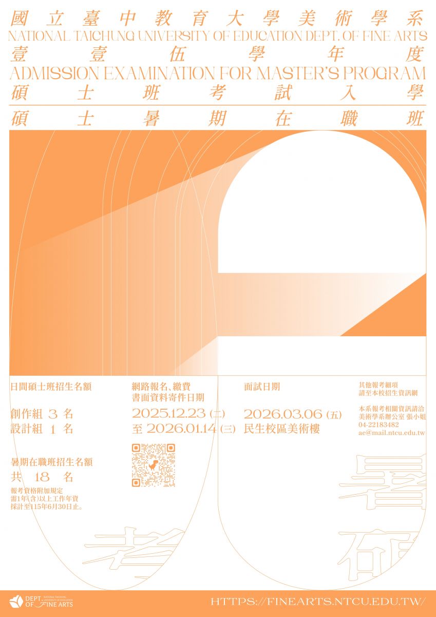 115學年度碩士班/碩士在職專班招生考試採網路報名,報名時間自114年12月23日(星期二)10時至115年1月14日(星期三)24時(報名網址https://mdpt.ntcu.edu.tw/recruit/signup,逾期不受理)