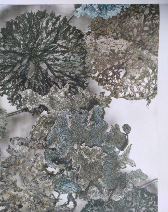 本系列以地衣與附生蕨類為靈感,透過線與布,織出那些「